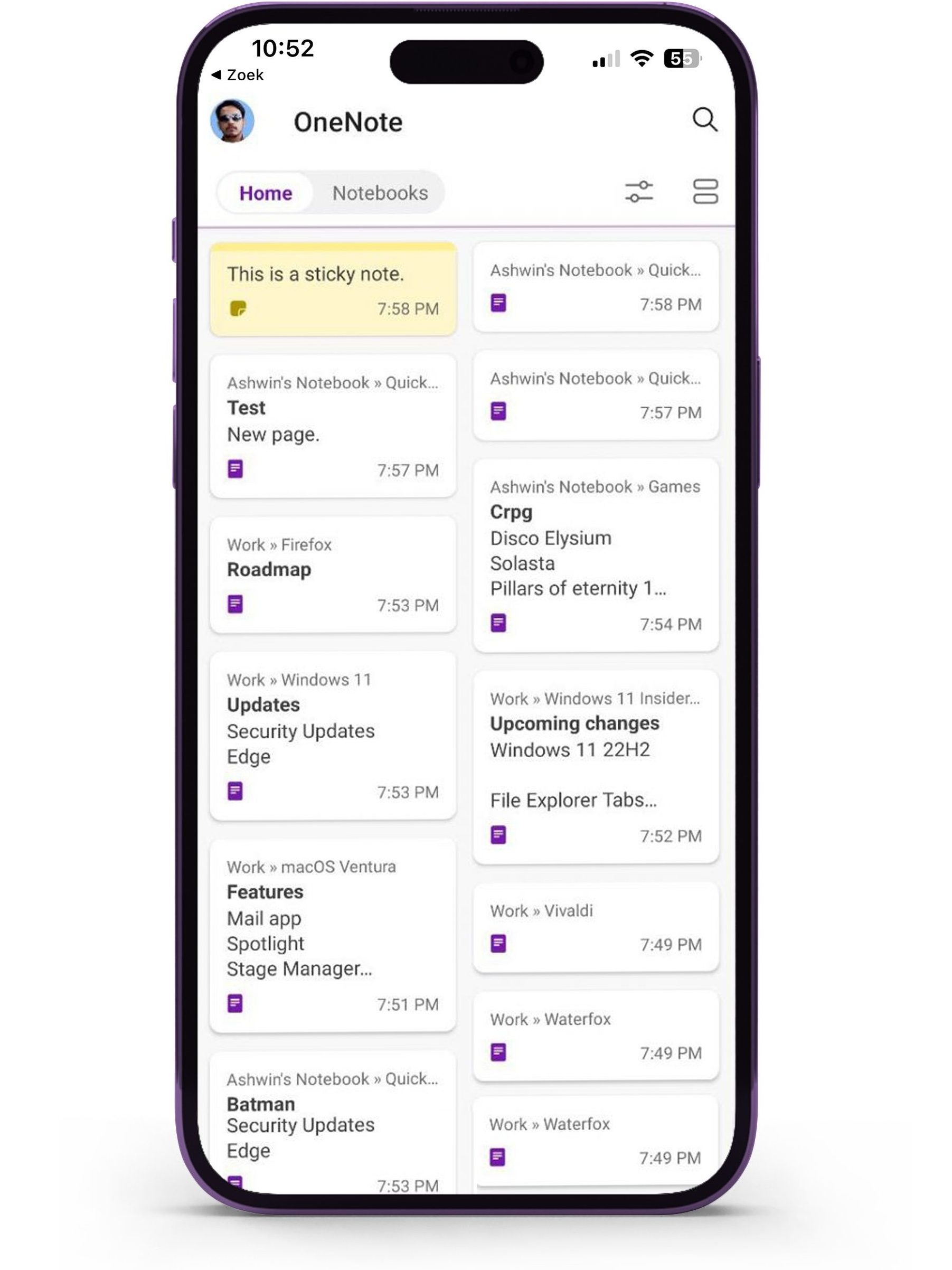 Log in bij Office.com met je Microsoft-account. In het startscherm vind je alle aantekeningen die je hebt gemaakt. Geef ze een eigen label en zet ze in verschillende groepen. Kan op verschillende pagina’s. Handig. Zo hou je altijd overzicht over je werk.