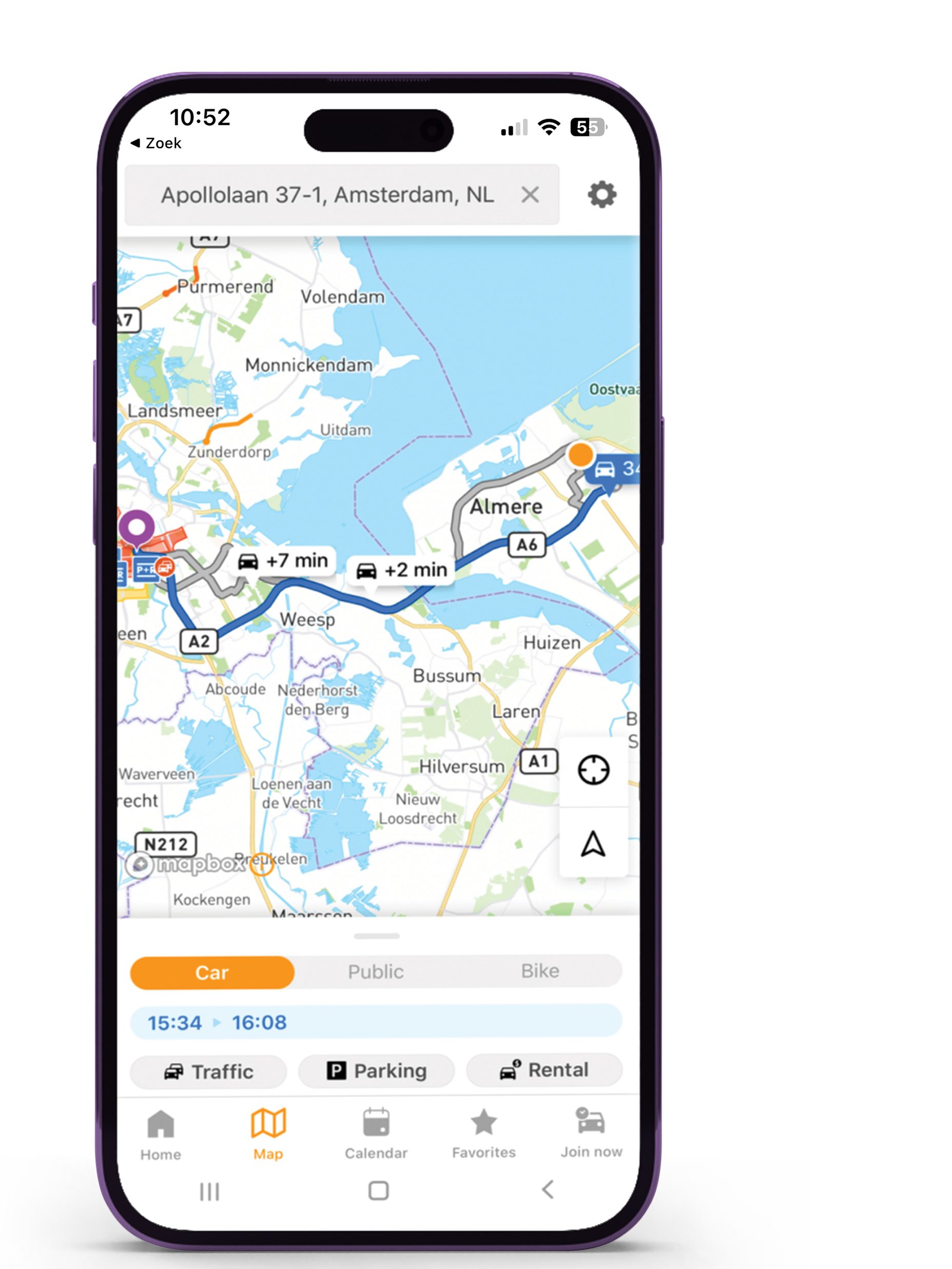 TimesUpp werkt samen met je agenda en je navigatie-app. Zo vertelt deze reisassistent je wat de snelste route is met de auto of het ov én hoe laat je moet vertrekken. Files en vertragingen worden realtime verwerkt en de app houdt ook rekening met de tijd die je nodig hebt om te parkeren.
